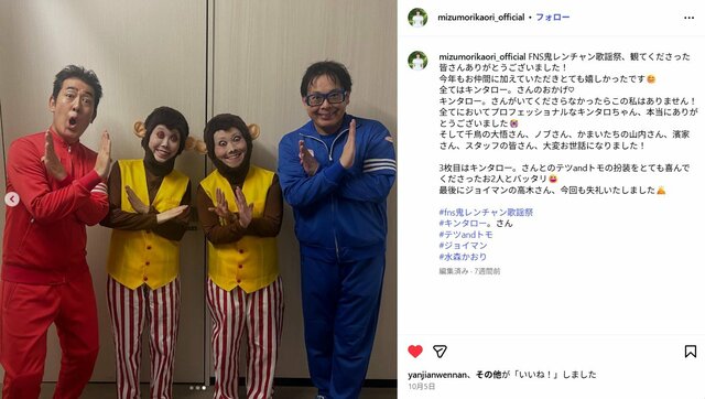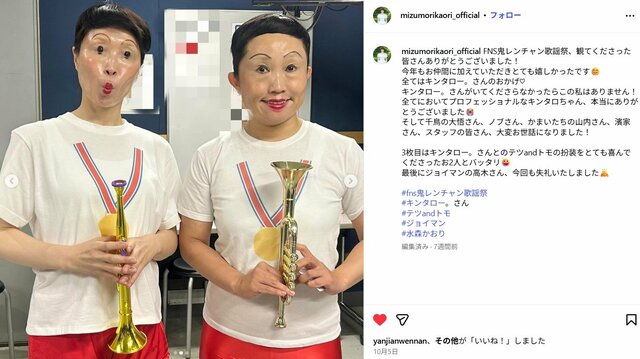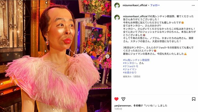 『NHK紅白歌合戦』に、今年で23年連続出演している水森かおり。彼女は『千鳥の鬼レンチャン』の常連だが、ものまね芸人のキンタローも驚きの、とんでもない仮装を披露することで知られる。過去にはジョイマン・高木晋哉やキンタローの持ちネタ“お隣の国の天才子ども歌手”などを披露した。『紅白』出場を受けて《水森かおりさんが鬼レンチャンばりの扮装でふざけた演出してくれたら嬉しい(あり得ない)》《今年の紅白で水森かおりさんが、鬼レンチャン見てるとやらかすのかどうか気になるw》なんて声も。