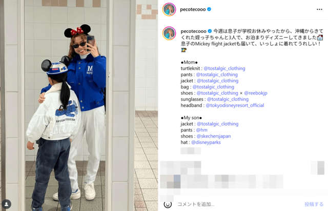 「え、りゅうちぇる」の声も…peco、“ロン毛まとめ髪”の7歳息子とお泊まりディズニー報告「リンクコーデ可愛い」 ピンズバNEWS編集部 2025.12.2 エンタメ (2/2ページ) 1ページ目から読む ■【画像】「え、りゅうちぇる」peco、“ロン毛まとめ髪”の7歳息子とお泊まりディズニーショット pecoが今回投稿したお泊まりディズニーショットには、《リンクくん背伸びたねー》《親子でリンクコーデ可愛いです》との声も上がっている。ネイビーと白でまとめたリンクコーデがほほえましい。 ※画像はpecoのインスタグラムより、以下同 この投稿をInstagramで見る Peco(@pecotecooo)がシェアした投稿 この画像の記事を読む 1 2