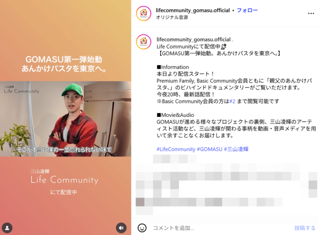 ※画像は『Life Community|ゴマス」の公式インスタグラムより