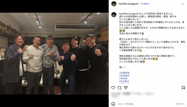 元プロ野球日本ハムの杉谷拳士氏や阪神・原口文仁氏らが、食道がんと咽頭がんを公表し、活動休止中のとんねるず・石橋貴明の近影をアップ。自身も大腸がんを患ったことがある原口氏は《貴さんに会えて安心しました。「お互い、がんサバイバー頑張ろう」という言葉もいただき、勇気が湧きます!》と石橋の言葉を紹介し、エールを送った。石橋はガッツポーズで生気漲る姿を見せている。