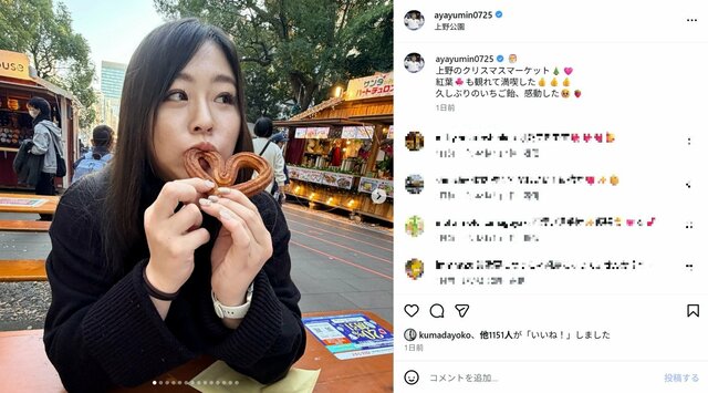 ■【画像】「最近更に綺麗になってませんか?」植草歩が上野で魅せたハートチュロス頬張りショット