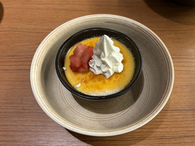 サイドメニューもクオリティは高い。店内で調理されて味のよくしみ込んだ『自家製 鶏唐揚げ』(570円)や、直前に表面を焦がしてパリパリにしたスイーツ『アイスブリュレ』(460円)は専門店さながらのおいしさだった。