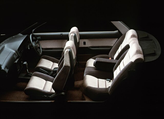 L以外の全車には、リヤスポイラーが標準装着された。1985年頃は、人気の高いドレスアップ装備だった。ワイドなテールランプも特徴だ。