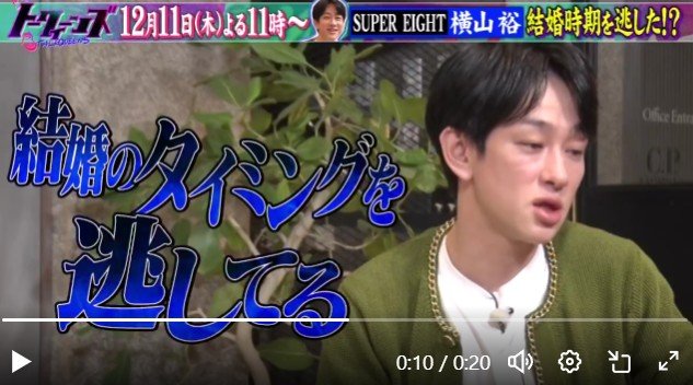 『トークィーンズ』で結婚願望&過去の恋愛についてかなり攻めたトークをしたSUPER EIGHTの横山裕。アイドルにとってタブーとも言えるジャンルの話題を包み隠さずトークする姿には《明日アイドル辞めるんか?》などの声も。