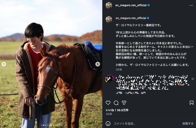 積み重ねが花開いた目黒蓮『ザ・ロイヤルファミリー』、すべてハマった竹内涼真『じゃあつく』に及川光博『ぼくたちん家』秋ドラマで演技が絶賛された男性俳優3人 ドラマライター・ヤマカワ 2025.12.19 テレビドラマ (4/4ページ) 1ページ目から読む ■【画像】SnowMan・目黒蓮、柔らかい笑顔に癒やされる…北海道の自然をバックにお馬さんと2ショット さらなる活躍が期待されます! ※画像は目黒蓮公式インスタグラムアカウントより ■TBS『ザ・ロイヤルファミリー』公式サイト ■TBS『じゃあ、あんたが作ってみろよ』公式サイト ■日本テレビ『ぼくたちん家』公式サイト この画像の記事を読む 1 2 3 4
