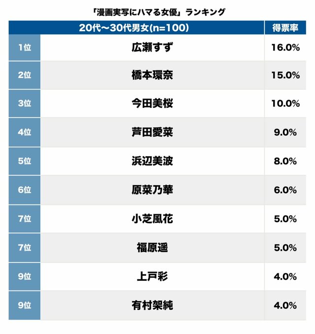 広瀬は、2016年に末次由紀氏漫画原作の主演映画『ちはやふる』シリーズで、競技かるたに情熱を燃やす高校生・綾瀬千早役で青春群像劇を好演。同年、新川直司氏漫画実写映画『四月は君の嘘』で、自由奔放なバイオリニスト・宮園かをり役で山崎賢人とダブル主演、2017年公開の河原和音氏漫画原作・生田斗真主演映画『先生!、、、好きになってもいいですか?』で主人公の高校教師に恋をする女子高生・島田響役、2023年には田島列島氏漫画原作の主演映画『水は海に向かって流れる』で、過去の出来事から心を閉ざしてしまったワケありのOL・榊千紗役を熱演した。