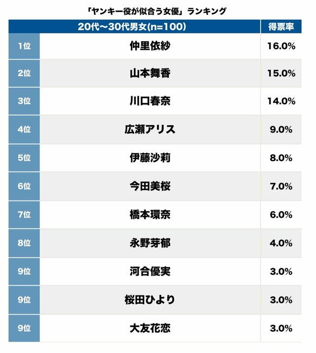 そして第1位(16.0%)は、仲里依紗。