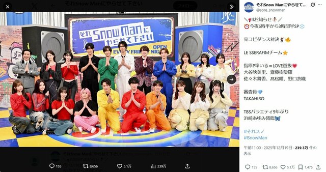 元AKB48でタレントの指原莉乃(33)が12月19日に放送された『それSnow Manにやらせて下さいSP』(TBS系)にゲスト出演。学生時代の同級生であるSnow Manの渡辺翔太(33)の“爆モテ伝説”を否定した。