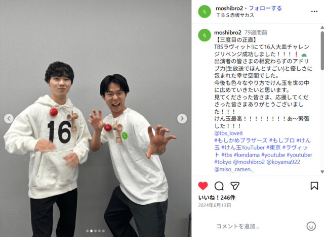 2023年の『NHK紅白歌合戦』でけん玉チャレンジに失敗し、SNSで“ゼッケン16番の男性”として注目された男性は、けん玉YouTuberコンビ・もしかめブラザーズのしゅん。Dすけと2人で動画を投稿していたが、24年末からコンビ活動を休止している。《小休止》《何年後になるのか。復活するかしないのかは、、おれら次第!》ということなので、将来的には復活するかもしれない。土下座のエピソードには多数の同情の声が寄せられた。