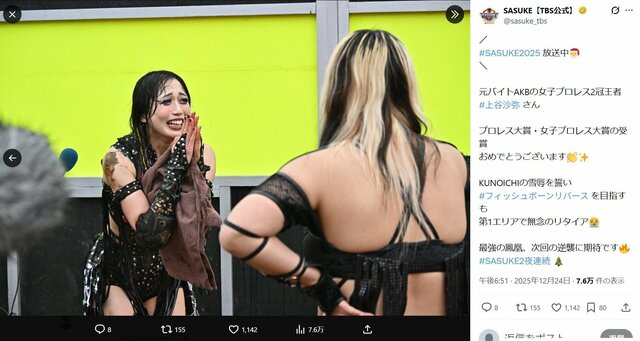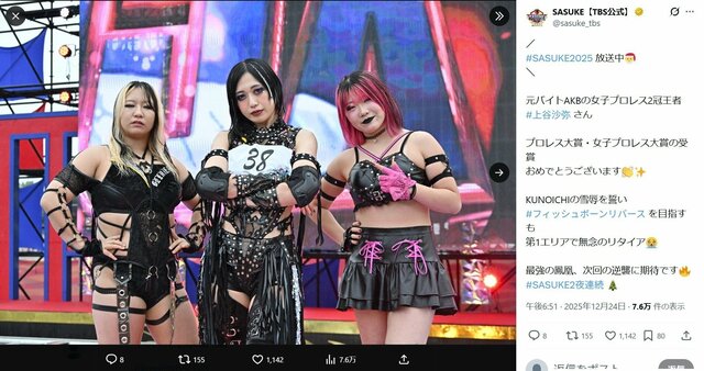 女子プロレスラーの上谷沙弥選手(29)が12月24日、スポーツバラエティー番組『SASUKE』(TBS系)に出場し、第1エリアで無念の脱落となった。そうしたなか、彼女の異色の経歴が話題になっている。