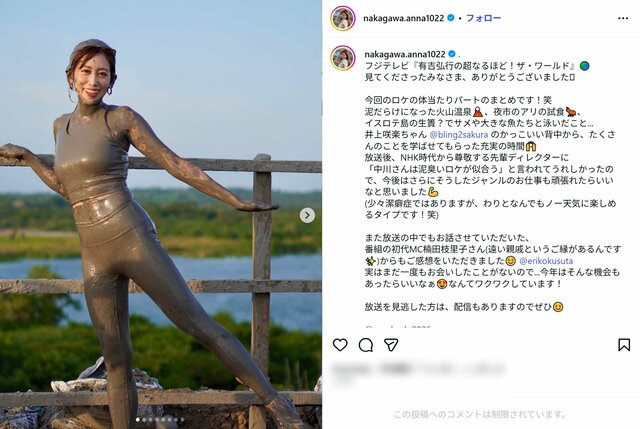 元NHKアナウンサーの中川安奈がインスタグラムを更新。そっくりだと“噂”の妹とのツーショットを公開して話題を呼んでいる。また、1月1日放送の特番『有吉弘行の超なるほど!ザ・ワールド』でコロンビアを訪れた際の泥まみれ&ボディライン露わな姿もフォロワーを歓喜させている。