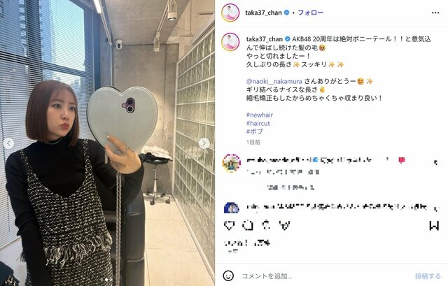 元AKB48の総監督でタレントの高橋みなみ(34)が1月6日、インスタグラムを更新。大胆なイメチェンショットを公開すると、ファンからは《たかみな印象変わるなあ》《ポニーテールも好きですが、ボブも良いですね!》など絶賛の声が寄せられた。その一方で、彼女が愛用するインパクト大のスマホケースも話題になっている。
