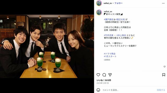 ■【画像】竹内涼真、新ドラマで共演の井上真央ほか“同級生”ショットには「納得いかない」の声