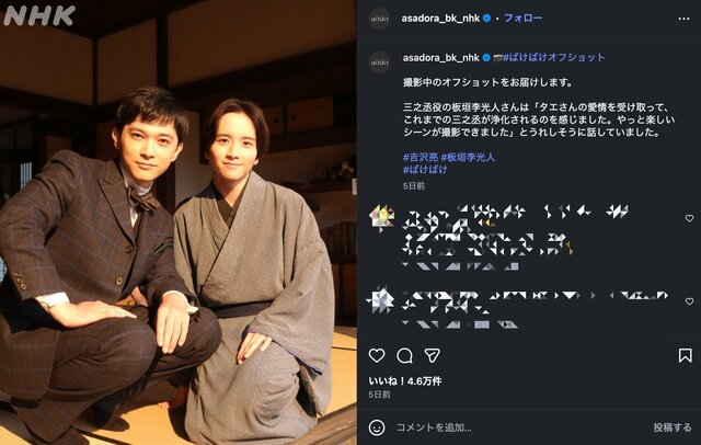 “ただいるだけで面白い”吉沢亮『ばけばけ』高石あかりに輪郭を与えた裏主役 2月に待ち受ける悲劇で朝ドラ最大級のロスが発生か ドラマライター・ヤマカワ 2026.1.19 テレビドラマ (3/3ページ) 1ページ目から読む ■【画像】吉沢亮と板垣李光人『ばけばけ』眼福すぎる結婚式のオフショット できるなら、錦織の悲劇は避けたい。 ※画像は『ばけばけ』公式インスタグラムアカウントより ■NHK『ばけばけ』公式サイト この画像の記事を読む 1 2 3