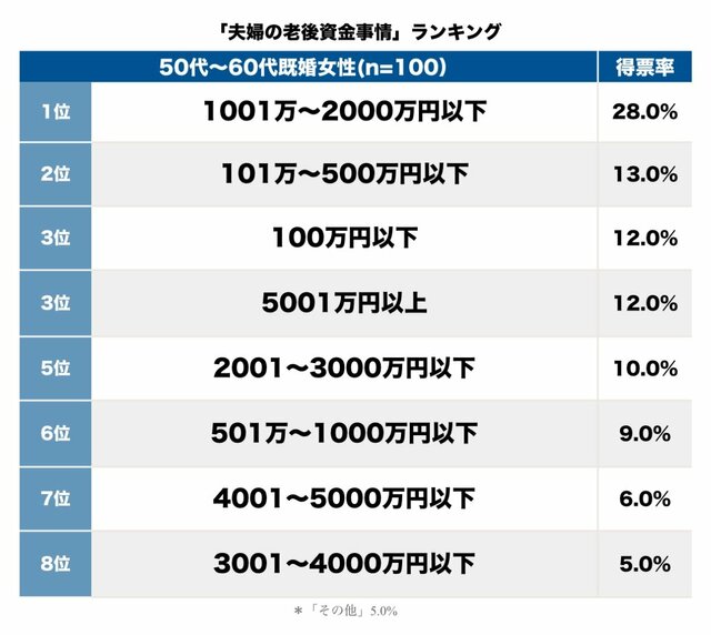 冒頭でも触れた“夫婦で2000万円”説があるためか、今回のリサーチでも「1001万~2000万円以下」がトップに。それぞれの家庭事情でも必要な額は変わってきそうだが、目標として2000万円を目指している家庭が多いのかもしれない。