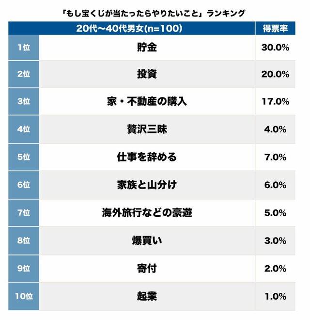 高額当選すれば将来への不安はかなり解消されそうだが、使わずに貯金しておけば心の余裕が生まれそう。投資のように元本割れのリスクがなく、巨額の当選金を手にしたことで気が大きくなり、大盤振る舞いしたり、投資に手を出して失敗するリスクも回避できる。