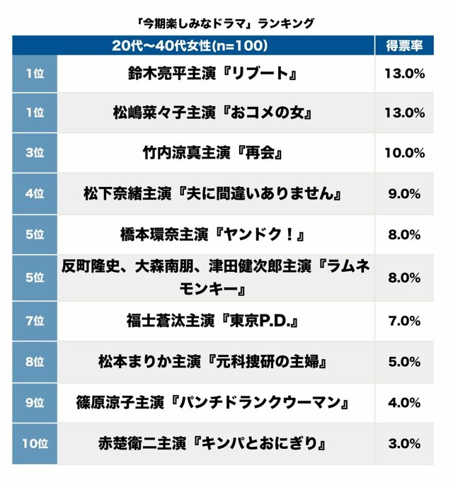 「タイトルのネーミングが面白いし、主演が松嶋奈々子だから期待もできる」(48歳/女性/主婦)