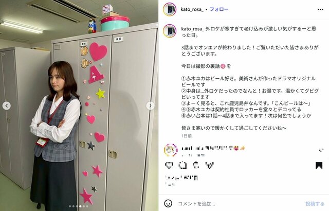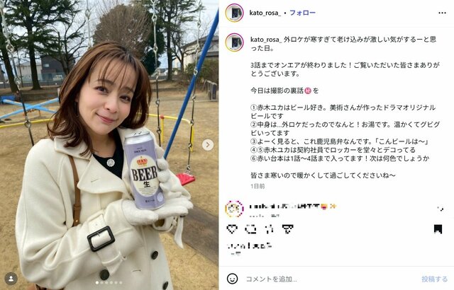 「老け込みが激しい」40歳・加藤ローサの“自虐コメント”にツッコミ殺到…明かしていた年齢に伴う体の変化 ピンズバNEWS編集部 2026.1.27 テレビドラマ 女優 エンタメ (2/2ページ) 1ページ目から読む ■【画像】「老け込みが激しい」加藤ローサが自虐ポツリ…ファンからツッコミ殺到した“不変の美貌”ショット 女優の加藤ローサ(40)が1月26日、インスタグラムを更新。主演を務めるドラマ24『婚活バトルフィールド37』(テレビ東京系)のオフショットを公開すると、ファンから《年齢重ねてもっと可愛くなってますよー》《魅力的でホント素敵な女性です》といったコメントが寄せられた。 ※画像は加藤ローサのインスタグラムより(以下同) この画像の記事を読む 1 2