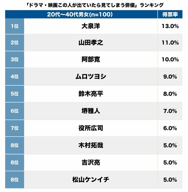 「演技の幅が広く、シリアスからコミカルまで作品に合わせられる」(47歳/男性/自営業)