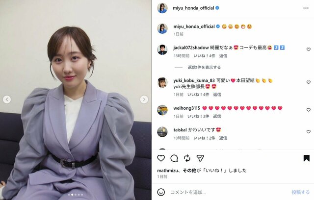 俳優でフィギュアスケーターの本田望結(21)が2月5日までに、インスタグラムを更新。最新ショットを公開すると、ファンからは《可愛さの中に大人っぽさが出てきたね》《一段と綺麗になりましたね》といったコメントが寄せられた。