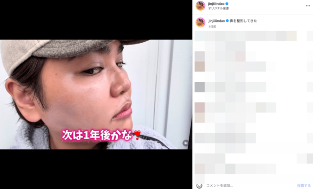 「ナチュラルでいい感じ」37キロ激ヤセの登録者数174万人YouTuber、“鼻整形のビフォーアフター”公開 ピンズバNEWS編集部 2026.2.7 エンタメ (2/2ページ) 1ページ目から読む ■【画像】「ナチュラルでいい感じ」37キロ激ヤセの登録者数174万人YouTuber、“鼻整形のビフォー・アフター” 《ナチュラルでいい感じ》との声もあがったじんじんの鼻整形。今後もビジュアルアップデートは止まらないようだ。 ※画像はじんじんのインスタグラムより、以下同 ※画像はじんじんのインスタグラムより、以下同 この投稿をInstagramで見る じんじん(@jinjiiiindao)がシェアした投稿 この画像の記事を読む 1 2
