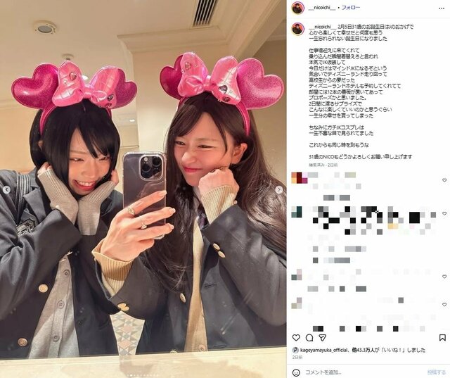 「現役JKよりもJKで困る」ちゃんみな、親友YouTuberと制服&ルーズ姿でディズニーで大はしゃぎ「制服似合いすぎじゃない!?」 ピンズバNEWS編集部 2026.2.9 アーティスト エンタメ (2/2ページ) 1ページ目から読む ■【画像】「現役JKよりもJKで困る」ちゃんみな、親友YouTuberと制服&ルーズ姿でディズニーで大はしゃぎ 今回の投稿には《現役JKよりもJKで困るかわいい》《年々若返ってるのどういうことなの》といった反応も。JK顔負けのはしゃぎっぷりがほほえましい。ちなみに左がちゃんみな。 ※画像はNICOのインスタグラムより ※画像はNICOのインスタグラムより この画像の記事を読む 1 2
