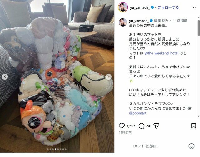 ■【画像】「座るの可哀想」「うちもやりまーす」賛否、山田優が公開“ぬいぐるみチェア” 「恐怖」の声も
