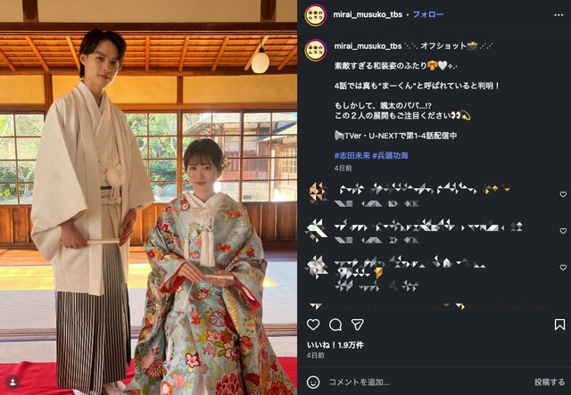 今期イチもったいないドラマ、志田未来『未来のムスコ』天才2人の演技力でもカバーできなかった小瀧望らイケメン陣の投入ミス ドラマライター・ヤマカワ 2026.2.10 テレビドラマ (3/3ページ) 1ページ目から読む ■【画像】志田未来と兵頭功海『未来のムスコ』和服の新郎新婦姿にファンうっとり 誰が本物のまーくんでも、問題なし! ※画像は『未来のムスコ』公式インスタグラムアカウントより ■TBS『未来のムスコ』公式サイト この画像の記事を読む 1 2 3