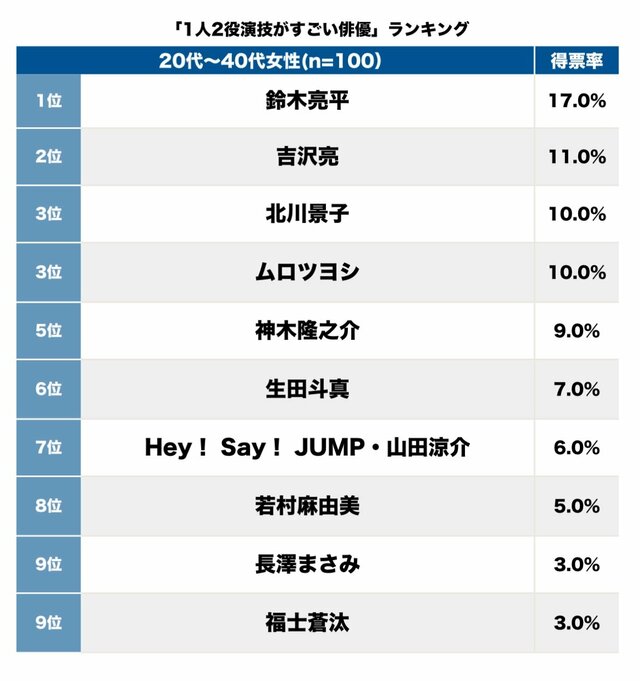 そして第1位(17.0%)は、鈴木亮平。
