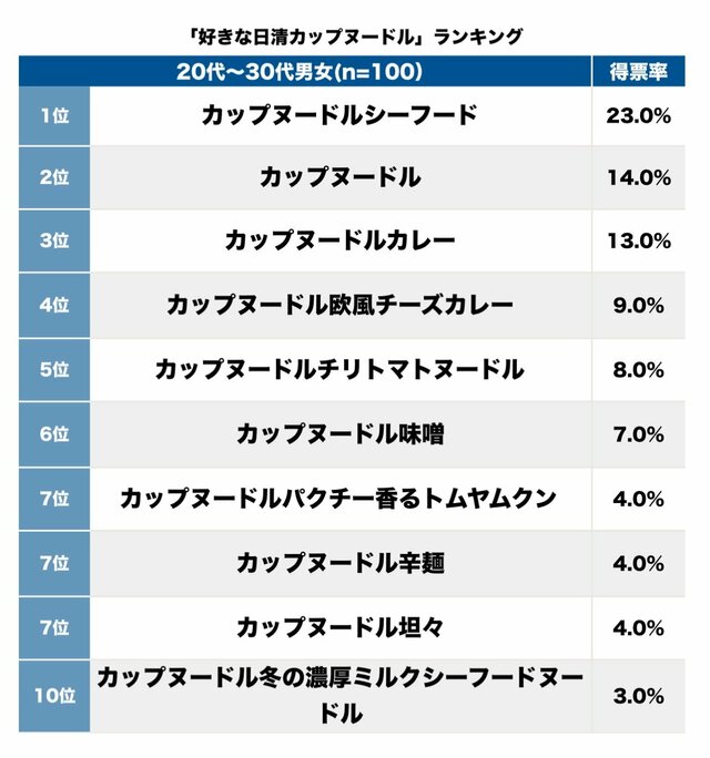 第1位は、カップヌードルシーフード。
