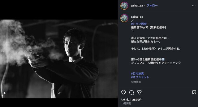 地上波連ドラは無理があったか、竹内涼真『再会』江口のりこ怪演の効果もわずかな間延び感で配信も失速 ドラマライター・ヤマカワ 2026.2.17 テレビドラマ (3/3ページ) 1ページ目から読む ■【画像】竹内涼真「かっこよすぎ」拳銃をかまえた『再会』モノクロ写真のしびれる真剣な表情 ついに飛奈淳一の秘密が明らかに! ※画像は『再会~Silent Truth~』公式インスタグラムアカウントより ■テレビ朝日『再会~Silent Truth~』公式サイト この画像の記事を読む 1 2 3