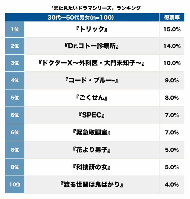 そして第1位(15.0%)は、『トリック』(テレビ朝日系)。