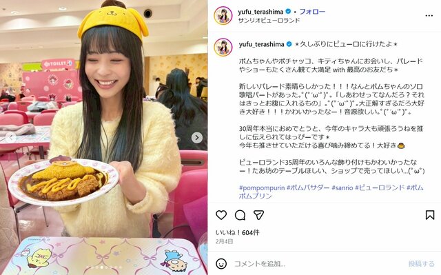 ゆるキャラ、ご当地キャラをはじめサンリオ愛も止まらない寺嶋由芙さん。“芸能界一のポムポムプリン好き”を自認する。また「がおぱわるぅ」は、「おむらいす島」に住むとってもパワフルなパワフルな恐竜のキャラクター 。「ぺたぺたみにりあん」は心優しくてひかえめな宇宙人。