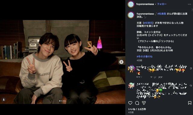 杉咲花にどハマリするためのドラマ、日テレ『冬のなんかさ、春のなんかね』中盤でやっと明らかになった大胆な仕掛けにXの語りが過熱状態 ドラマライター・ヤマカワ 2026.2.17 テレビドラマ (3/3ページ) 1ページ目から読む ■【画像】timelesz・松島聡の柔らかな微笑み『冬のさ春のね』杉咲花との2ショが癒やし満点 杉崎と松島、2人の演技に注目! ※画像は『冬のなんかさ、春のなんかね』公式インスタグラムアカウントより ■日本テレビ『冬のなんかさ、春のなんかね』公式サイト この画像の記事を読む 1 2 3
