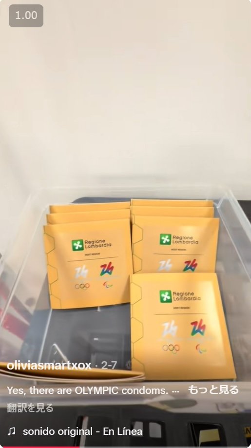 フィギュアスケートのスペイン代表であるオリビア・スマート選手は2月6日、自身のTikTokで選手村に置かれたコンドームを紹介。選手村内を映した動画では、廊下に設置された「コンドーム」と書かれた箱のなかに、黄色い袋に入ったコンドームが“取り放題”になっていることがわかる。
