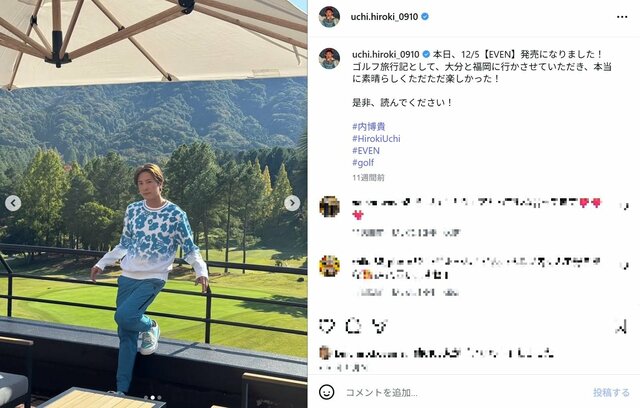 ■【画像】「誰かわかんなかった」内博貴が見せたギャップに驚き…髭なし×ロン毛のゴルフウェア姿