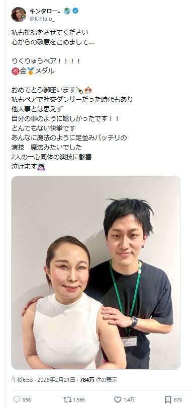 キンタロー。がミラノ・コルティナ五輪のフィギュアスケート・ペアで金メダルを獲得した“りくりゅうペア”こと三浦璃来選手と木原龍一選手のモノマネをXで披露。《誇張し過ぎです 泣けない、笑えない、悲しい お祝いになっていません》《すみませんが選手へのリスペクトを感じません…りくちゃんに失礼だと思います》と批判的な声が寄せられてしまった。