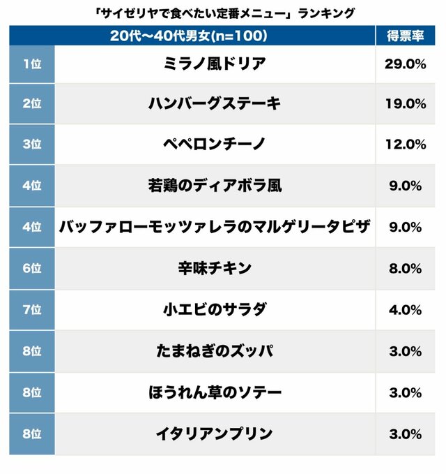 そして第1位(29.0%)は、ミラノ風ドリア。