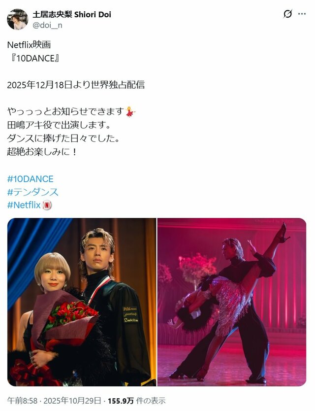 竹内涼真、土居志央梨との熱愛報道で判明した「三吉彩花・吉谷彩子・里々佳」元カノの“真剣度”との明確な違い 事務所に結婚説直撃も“無言” ピンズバNEWS編集部 2026.3.4 女優 俳優 (3/3ページ) 1ページ目から読む ■【画像】竹内涼真と熱愛・土居志央梨が公開、すでに恋人同士感が漂っていた“竹内との多幸感2ショット” Netflix映画『10DANCE』での共演をきっかけに交際へと発展したと報じられている竹内涼真と土居志央梨。土居のXでは竹内と一緒にいるときの“優しい表情”が複数確認できる。 ※画像は土居志央梨の公式Xより この画像の記事を読む 1 2 3