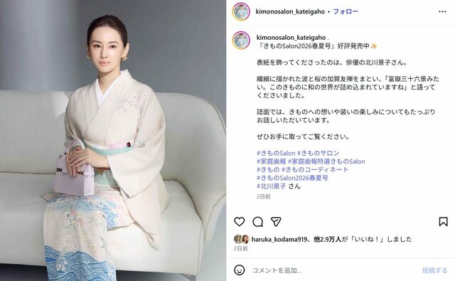 女優の北川景子(39)が3月5日までに、着物情報誌『きものSalon』(世界文化社)のインスタグラムに登場。優雅な着物姿を披露すると、ファンからは《国宝級の美しさで誰もかないませんね!》《見惚れちゃいます》といった絶賛コメントが寄せられた。