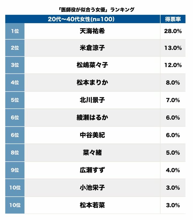 「しっかりしていて安心感もあり、凛としたイメージも医師役にピッタリ」(34歳/女性/主婦)