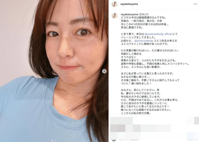 「え?すっぴん?」磯山さやか、驚きの美フェイスでメリハリボディ作り姿公開も「痩せたいわけではない」 ピンズバNEWS編集部 2026.3.6 エンタメ (2/2ページ) 1ページ目から読む ■【画像】「え?すっぴん?」ジム通いでメリハリボディ作りに励む磯山さやか “すっぴん”でメリハリボディ作りに励む姿を公開するも《痩せたいわけではない》とつづった磯山さやか。彼女の“マシュマロボディ”を支持するファンたちはその一言に安堵したことだろう。 ※画像は磯山さやかのインスタグラムより、以下同 この画像の記事を読む 1 2
