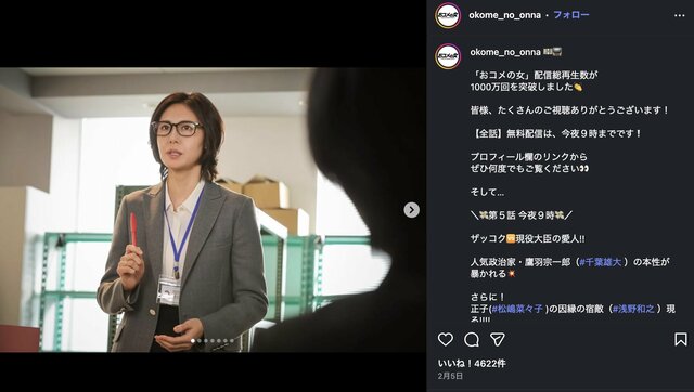 松嶋菜々子がテレ朝の救世主に『おコメの女』配信2位の好成績にレギュラー化の匂わせを連発 高まるポスト米倉涼子『ドクターX』 ドラマライター・ヤマカワ 2026.3.10 テレビドラマ (3/3ページ) 1ページ目から読む ■松嶋菜々子「理想の上司すぎ」新境地の『おコメの女』美しく凛々しい米田正子が話題 テレビ朝日の看板ドラマになるか? ※画像は『おコメの女』公式インスタグラムアカウントより ■テレビ朝日『おコメの女』公式サイト この画像の記事を読む 1 2 3