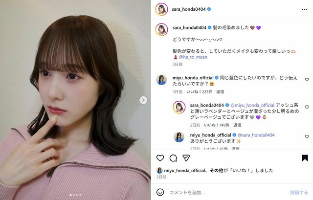 難関高校卒業が話題の本田紗来、黒髪→茶髪へのイメチェン姿公開に大反響 雰囲気ガラリの“髪色オーダー”明かす ピンズバNEWS編集部 2026.3.11 女優 エンタメ フィギュアスケート (2/2ページ) 1ページ目から読む ■【画像】「可愛すぎるぅぅぅ」本田紗来、高校卒業直後に公開した“黒髪→茶髪”へのイメチェン姿 モデルでタレントの本田紗来(18)が3月7日、インスタグラムを更新。髪色でイメチェンした姿を公開すると、ファンからは《大人ぽいねー》《完璧っす》《めっちゃ似合ってるー!》といったコメントが寄せられた。 ※画像は本田紗来の公式インスタグラムより(以下同) この画像の記事を読む 1 2