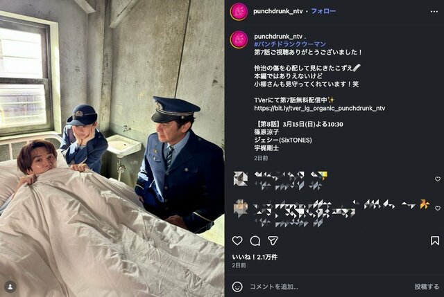 篠原涼子『パンチドランク・ウーマン』低視聴率でもジェシーがいれば問題なし、冬季オリンピック対策も? 物語よりサービスに徹した日本テレビの潔さ ドラマライター・ヤマカワ 2026.3.15 テレビドラマ (3/3ページ) 1ページ目から読む ■【画像】SixTONES・ジェシー「なんだこのかわいい生き物」布団から顔を覗かせる姿にファン悲鳴 ジェシーがいればそれでいいと言う人が多いのは間違いない。 ※画像は『パンチドランク・ウーマン』公式サイトより ■日本テレビ『パンチドランク・ウーマン』公式サイト この画像の記事を読む 1 2 3