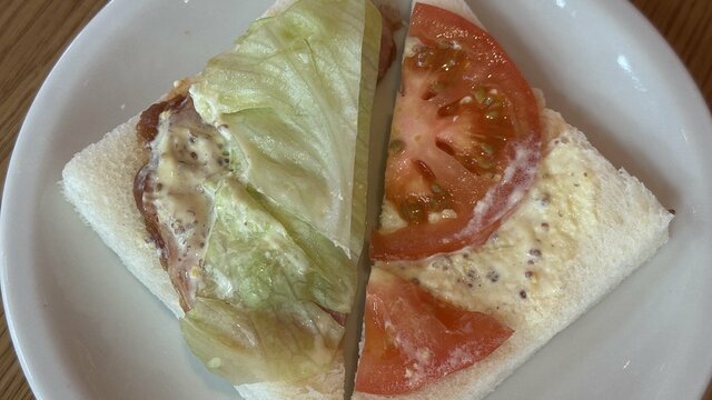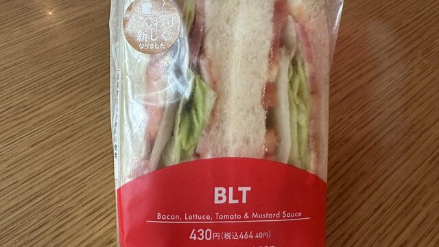 続いて、セブン-イレブンのサンドイッチでは高価格帯である『BLT』(464円)。商品刷新までは429円で買えたのだから大幅な値上がりと言える。ベーコンが入っているものの、レタスやトマトのボリュームが多いためか、カロリーは267キロカロリーと控えめだ。