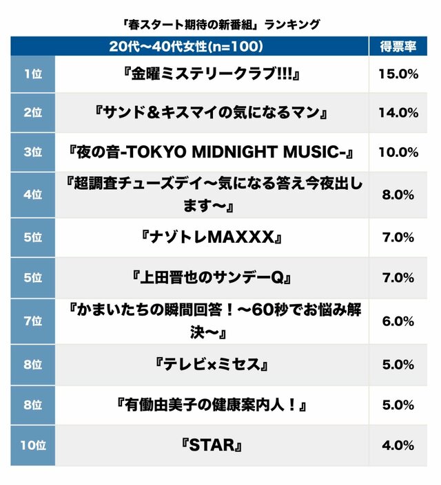 そして第1位(15.0%)は、『金曜ミステリークラブ!!!』(日本テレビ系)。