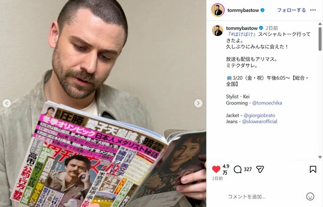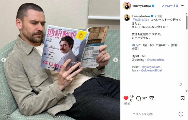 NHK連続テレビ小説『ばけばけ』で準主人公・ヘブンを演じたトミー・バストウ。すでに次の仕事が控えているようで、3月17日には髪型を丸坊主にイメチェンした姿を公開。《坊主になったら若返った》《精悍で素敵です》《まるこめくん!》などの声が寄せられている。