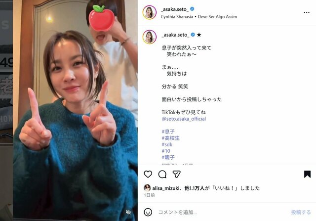 ■【画像】「パパそっくり」瀬戸朝香のインスタに登場した“井ノ原快彦似”と話題の16歳長男
