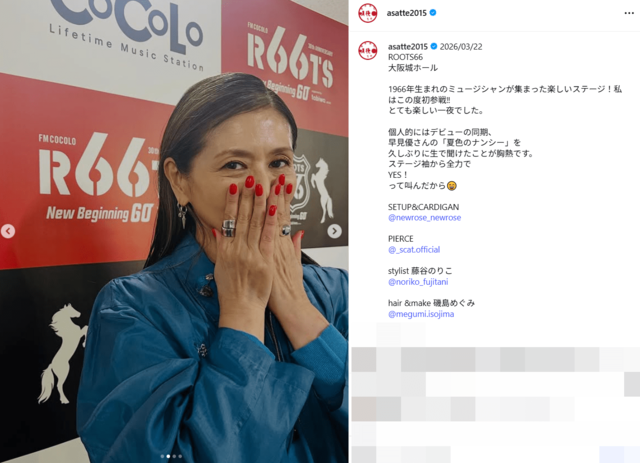 小泉今日子、シースルーな大胆“お腹見せ”ステージ衣装コーデに驚きの声「これで60歳とは素晴らしい」 ピンズバNEWS編集部 2026.3.30 アーティスト エンタメ (2/2ページ) 1ページ目から読む ■【画像】「これで60歳とは素晴らしい」小泉今日子、シースルーな大胆“お腹見せ”コーデ 《これで60歳とは素晴らしい》という声があがった小泉今日子のシースルーな“お腹見せ”コーデショット。5月には武道館公演も控えており、ファンの期待はさらに高まっている。 ※画像は小泉今日子のインスタグラムより、以下同 この画像の記事を読む 1 2